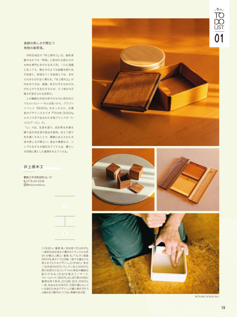 紙面では、井上徳木工の角物へのこだわりに加えて、商品が誕生するきっかけについても触れていただいております。